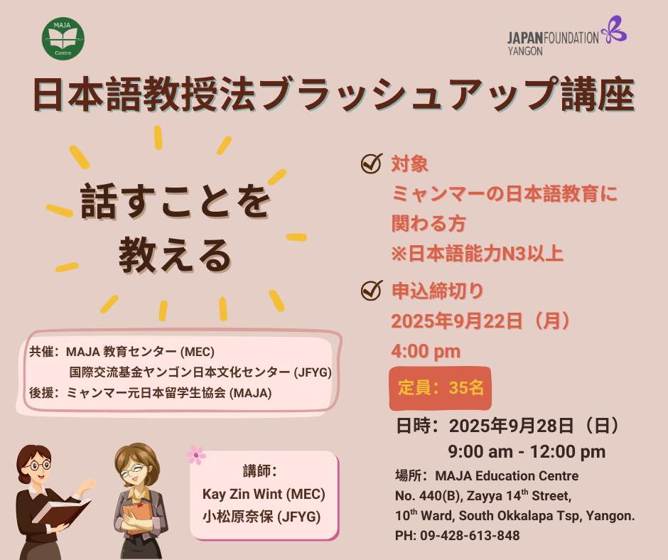 The Japan Foundation, Yangon နှင့် MAJA တို့ ပူးပေါင်းကာ ဂျပန်ဘာသာစကား သီးခြားစွမ်းရည်သင်ကြားရေးနည်းစနစ် မွမ်းမံသင်တန်း ကျင်းပခြင်း